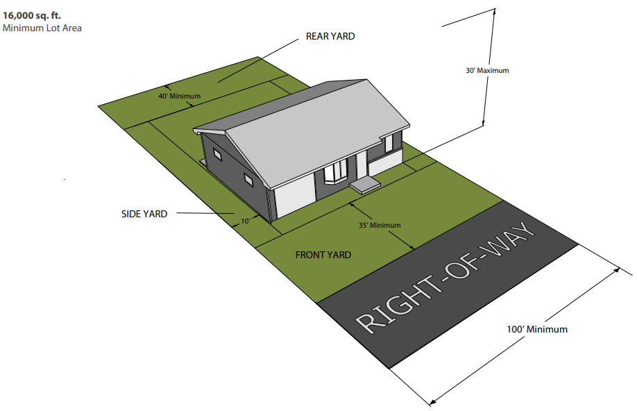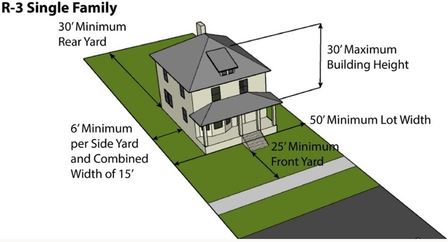 5. Bulk Space and Yard Regulations: Bulk regulations in the R-1 District shall be as specified in Table 3.1 and illustrated in Figure 3-1.