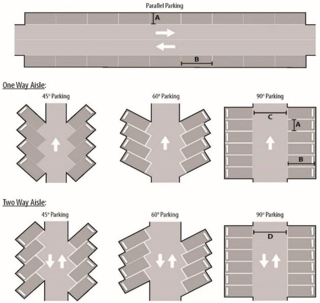 5-5-A. Module size. The minimum dimensions of parking spaces and aisles shall be as follows: