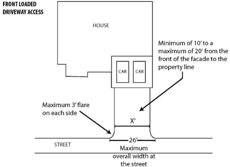 a. Front Loaded Driveway Access (One or Two Car Garage)