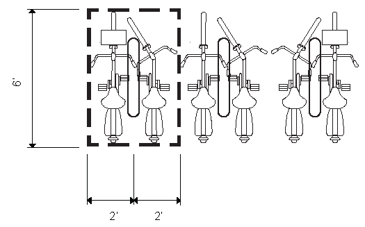 Each required bicycle parking space must be at least 2 feet by 6 feet. Where a bike can be locked on both sides of a bicycle rack without conflict, each side can be counted as a required space.