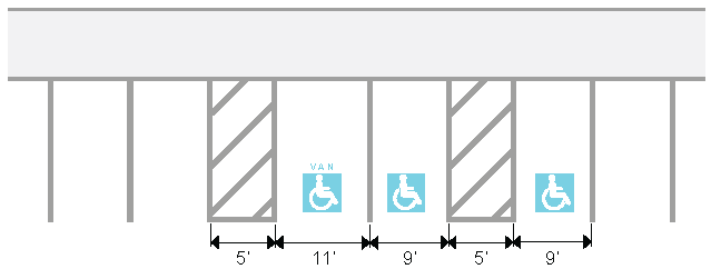 In addition, accessible van spaces are required at a rate of 1 van space for every 8 required accessible spaces, with a minimum of 1.