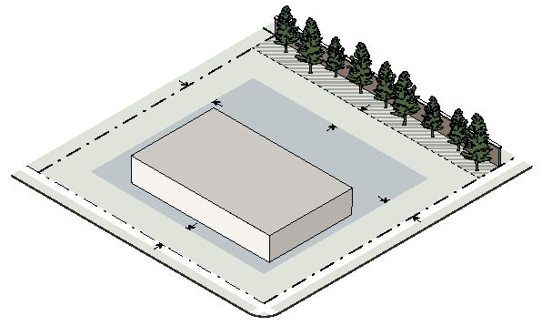 In industrial buildings where tenants are specified, parking is calculated according to the uses identified in the floor plan. Where tenants are not specified, parking is calculated using 20% office and 80% warehouse.