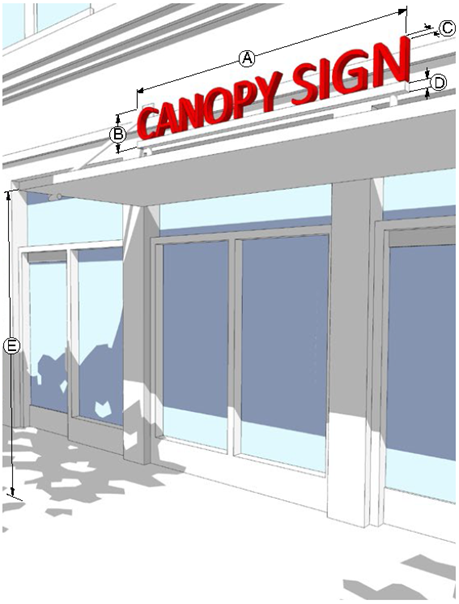 Lights must not be mounted on the top or sides of a canopy and the sides of a canopy must not be illuminated.