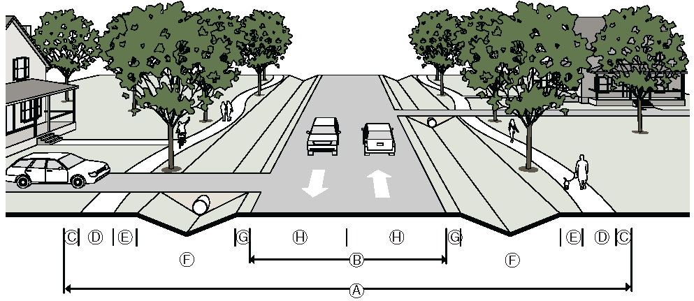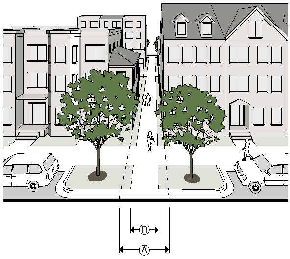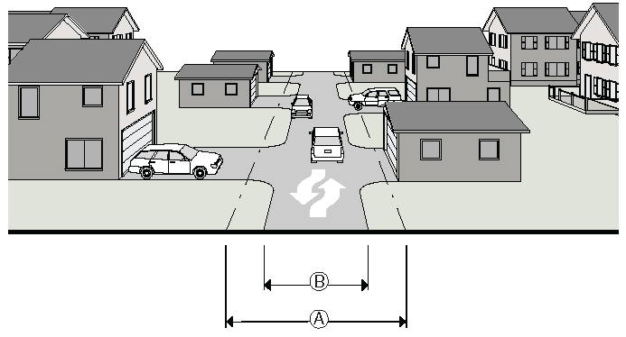 Where residential streets are longer than 600 feet, traffic calming devices may be required by the Transportation Director. These measures may include green space, median islands, roundabouts and or other traffic calming devices.
