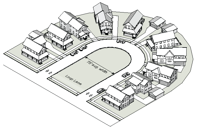 The intent of the block and access standards is to provide a well-connected street network. Large blocks with limited connectivity discourage walking, contribute to street congestion and add driving distance that can negatively impact emergency services. New streets should be designed to consider future development.