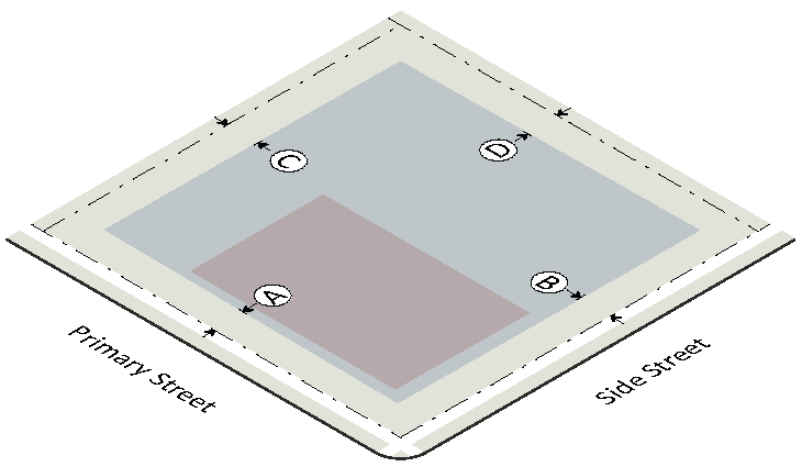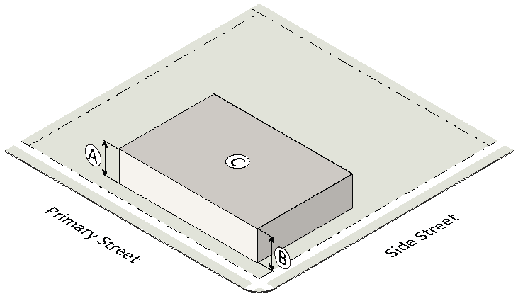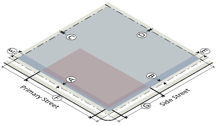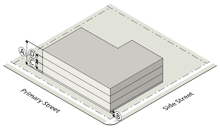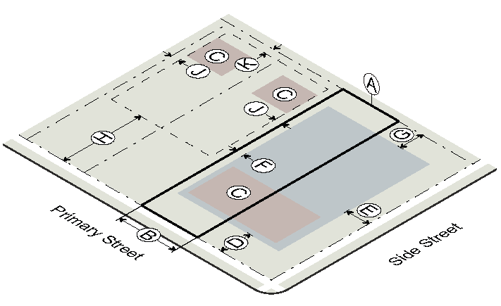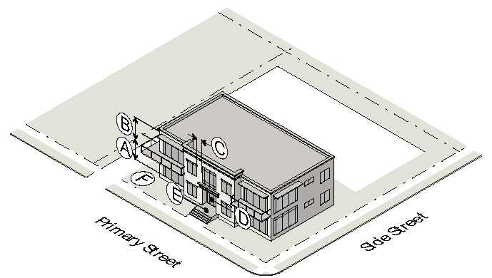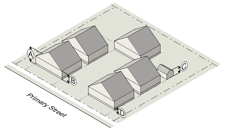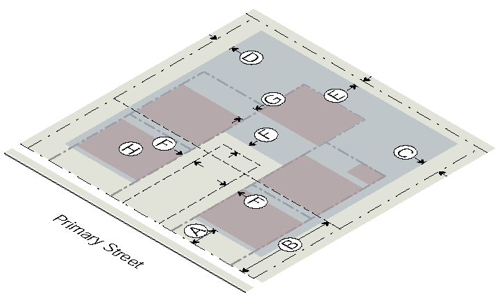 | Ⓐ Primary street - principal buildings (min) | 10' |