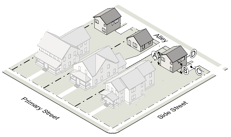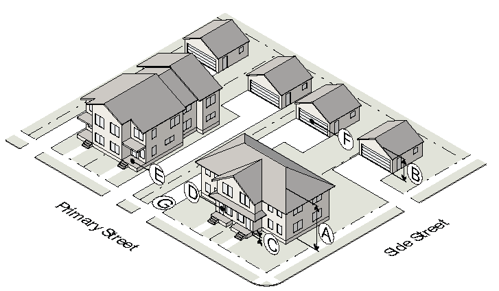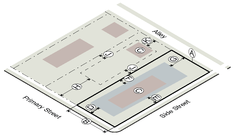 | Ⓐ Lot area, alley-loaded (min) | 4,000 sf |