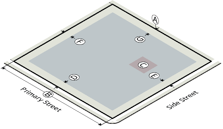 | Ⓓ Primary street (min) | 30' |