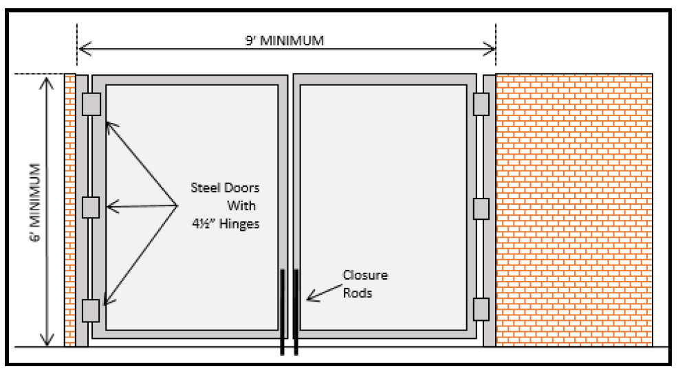 Enclosures shall have metal-framed doors to fully enclose sanitation dumpsters installed.