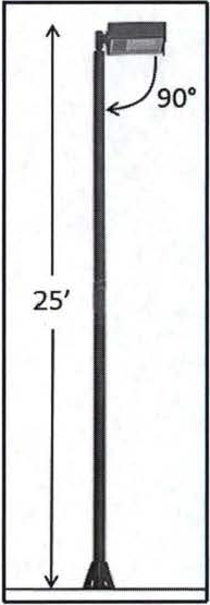 Light units shall be adjusted to 90 degrees from the light pole and oriented perpendicularly to the ground.