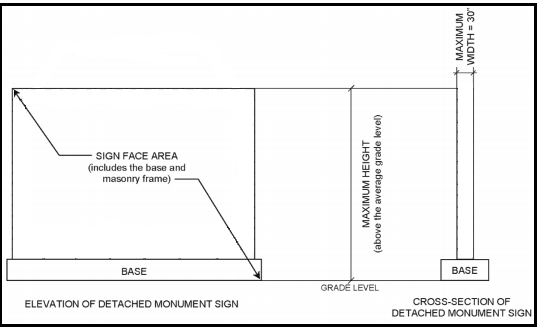 Not to exceed 35 square feet in total area and five feet in height above the average grade of the nearest public right-of-way. (See Figure 70.7)