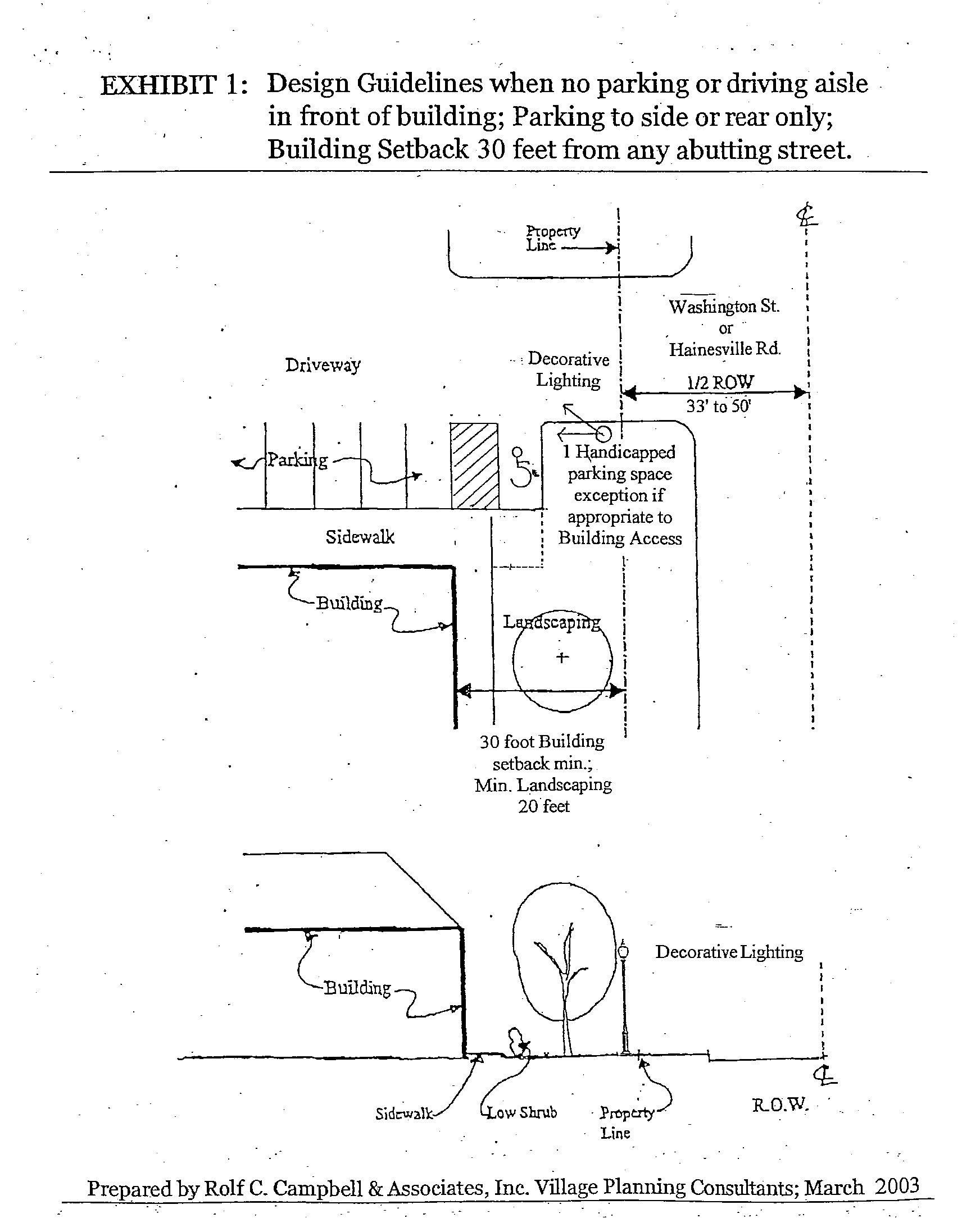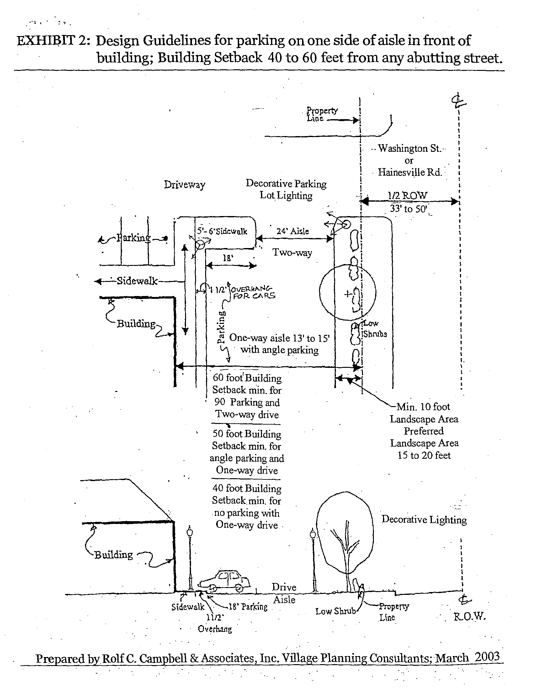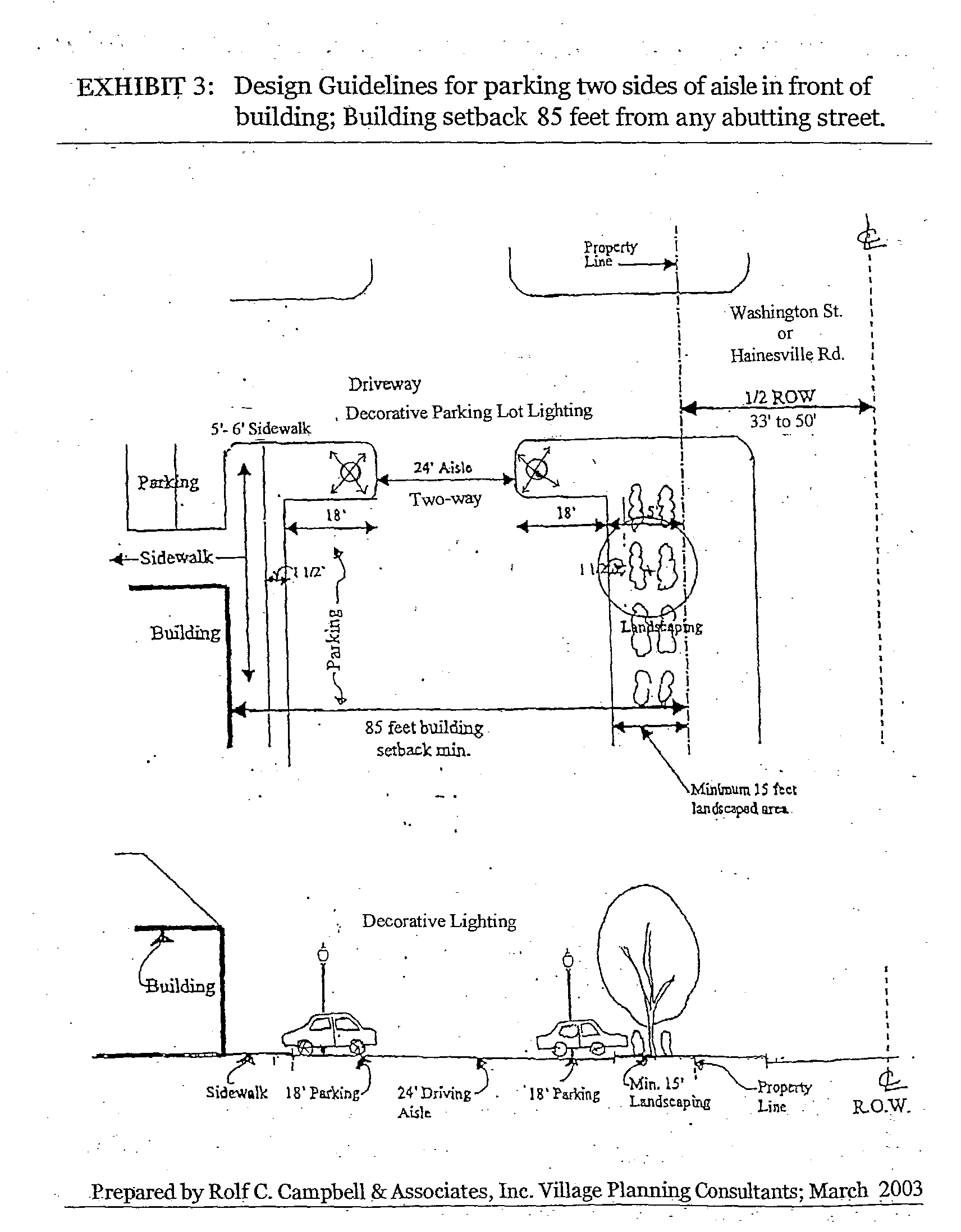 Ingress and Egress - On all commercial lots with less than two hundred (200) feet frontage on a public road, access is limited to one combined ingress and egress with a minimum width of twenty (20) feet and a maximum width of thirty-two (32) feet measured from inside of curbs at property line. (Location determined by Village Engineer or others appointed by the Village.) On all commercial lots of two hundred (200) feet and over frontage on a public road, access is limited to two combined ingresses and egresses with a minimum width of twenty (20) feet and a maximum width of thirty-two (32) feet from inside of curbs at property line locations. (Determined by Village Engineer or others appointed by the Village.) Details of ingresses and egresses to meet state, county, and Village requirements.