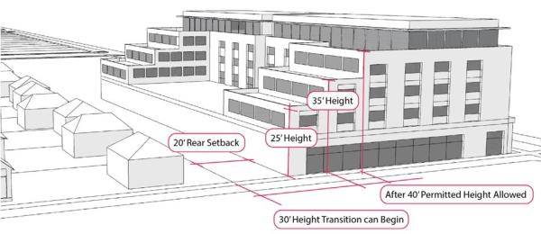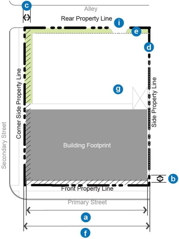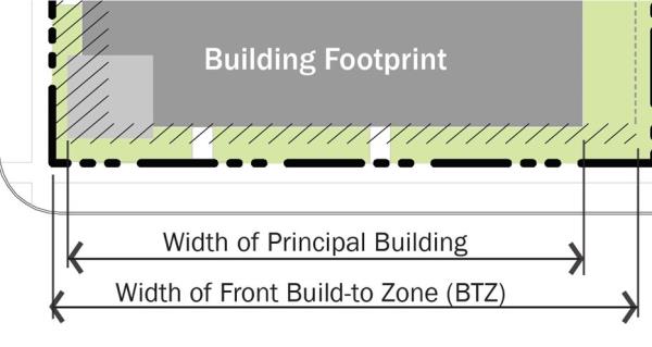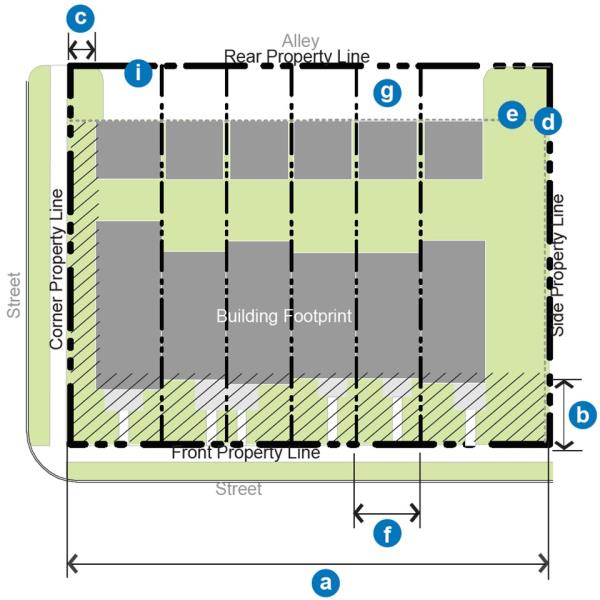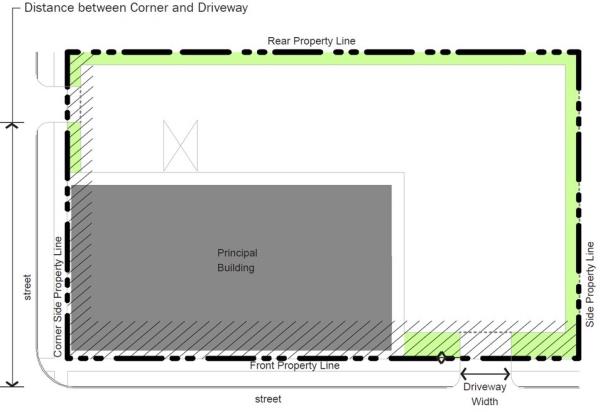 ii) Driveways shall not be within the 40’ sight triangle of an intersection of two streets (corner), unless otherwise stated in 10-13-3 Building Type Standards.