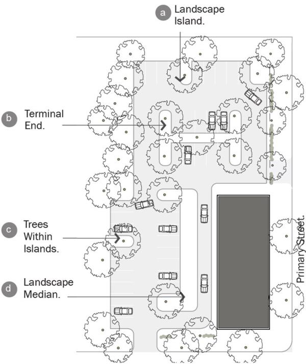 vii) Landscape Screening. All parking areas shall meet the requirements of in 10-13-5 Landscape Standards.