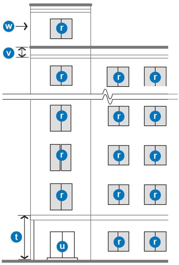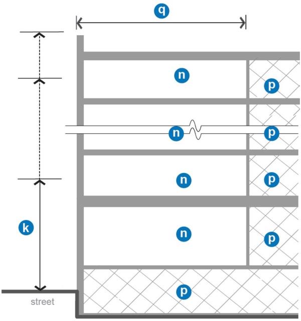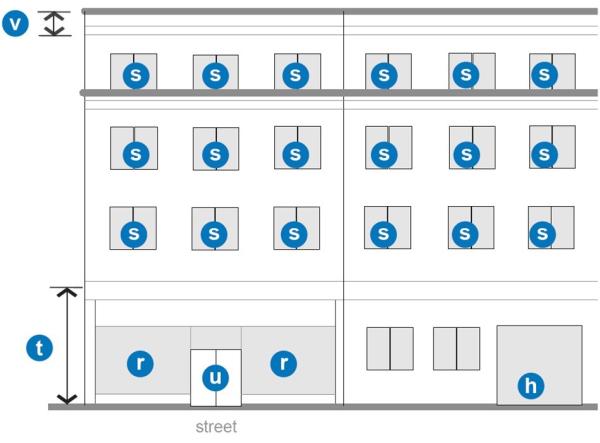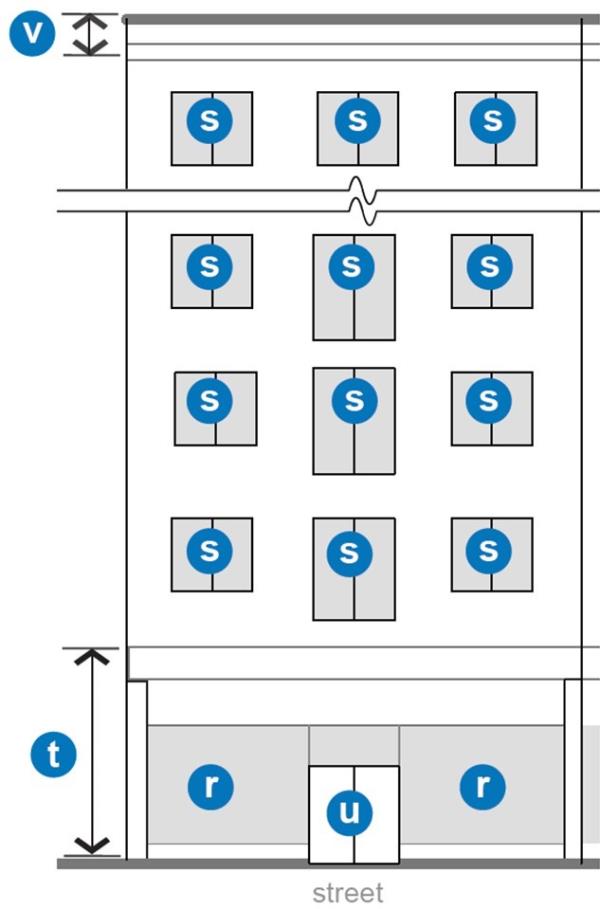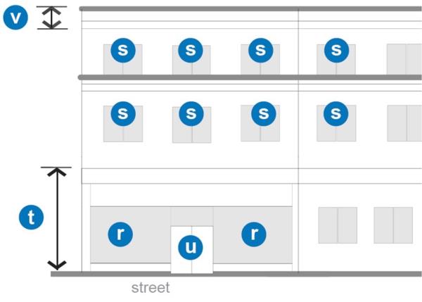ii) Permitted in Upper Stories Only (“U”). These uses are permitted by-right in the districts in which they are listed, provided that the uses are located in the upper stories of a structure. These uses may also be located in the ground story provided that they are located beyond a depth of at least 30 feet from the front façade.