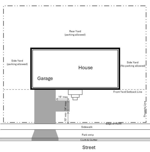 | Dwelling, Single-Family Dwelling, Two-Family | Two (2) spaces, side by side. Parking spaces shall not be within the required front or side setback |
