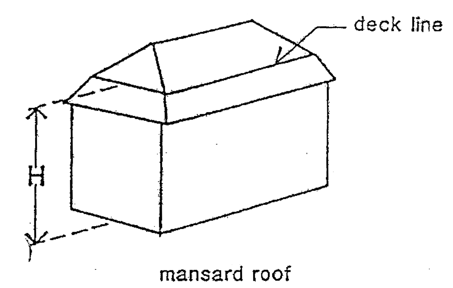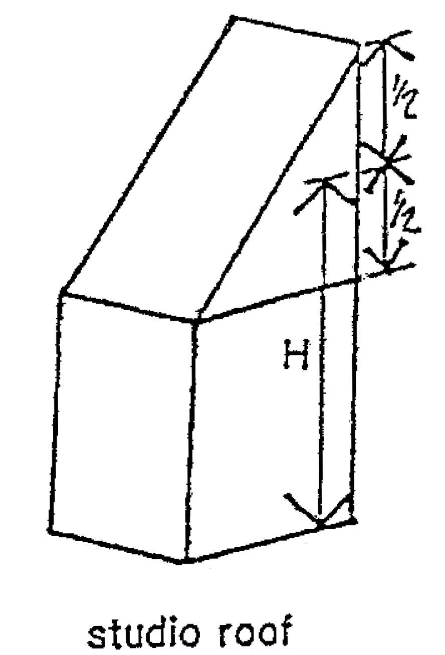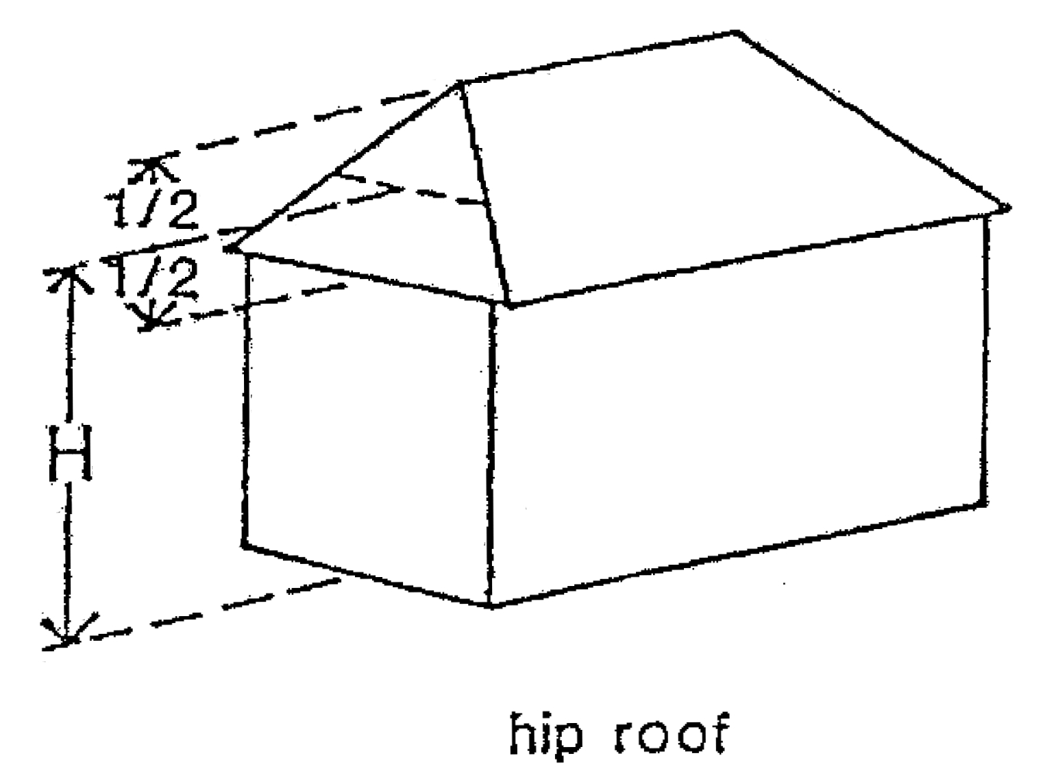 To the average height between the eaves and the ridge for the highest gable, hip studio, or gambrel roof; or
