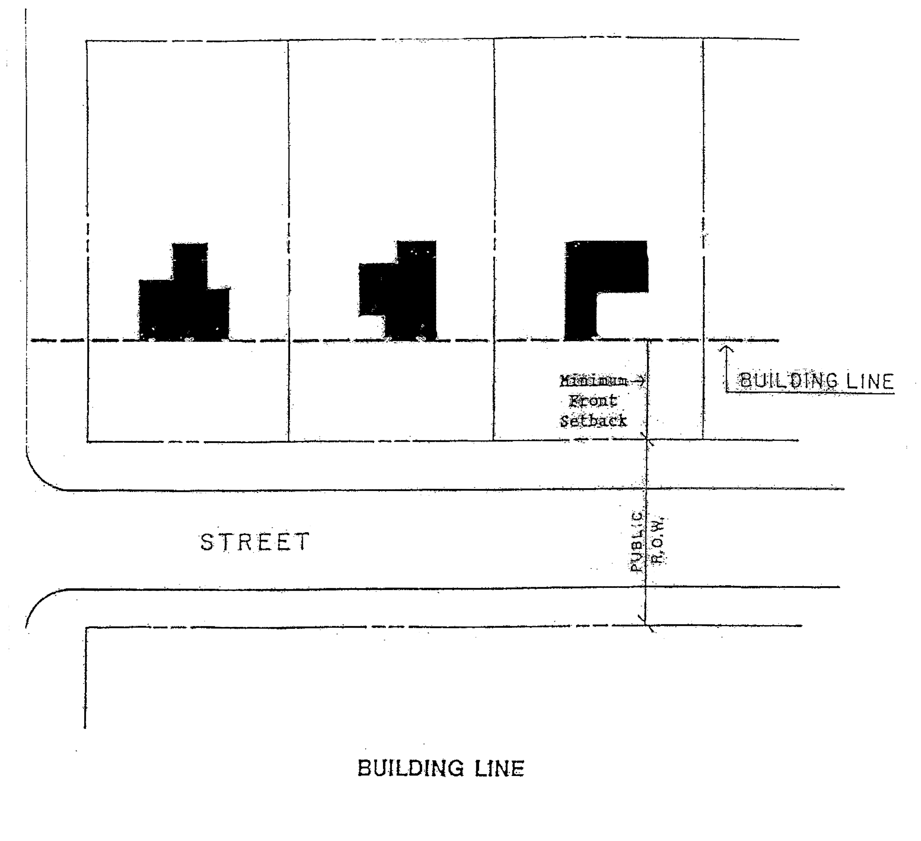 Building line means a line parallel to the front lot line at the minimum required front setback line (see illustration).