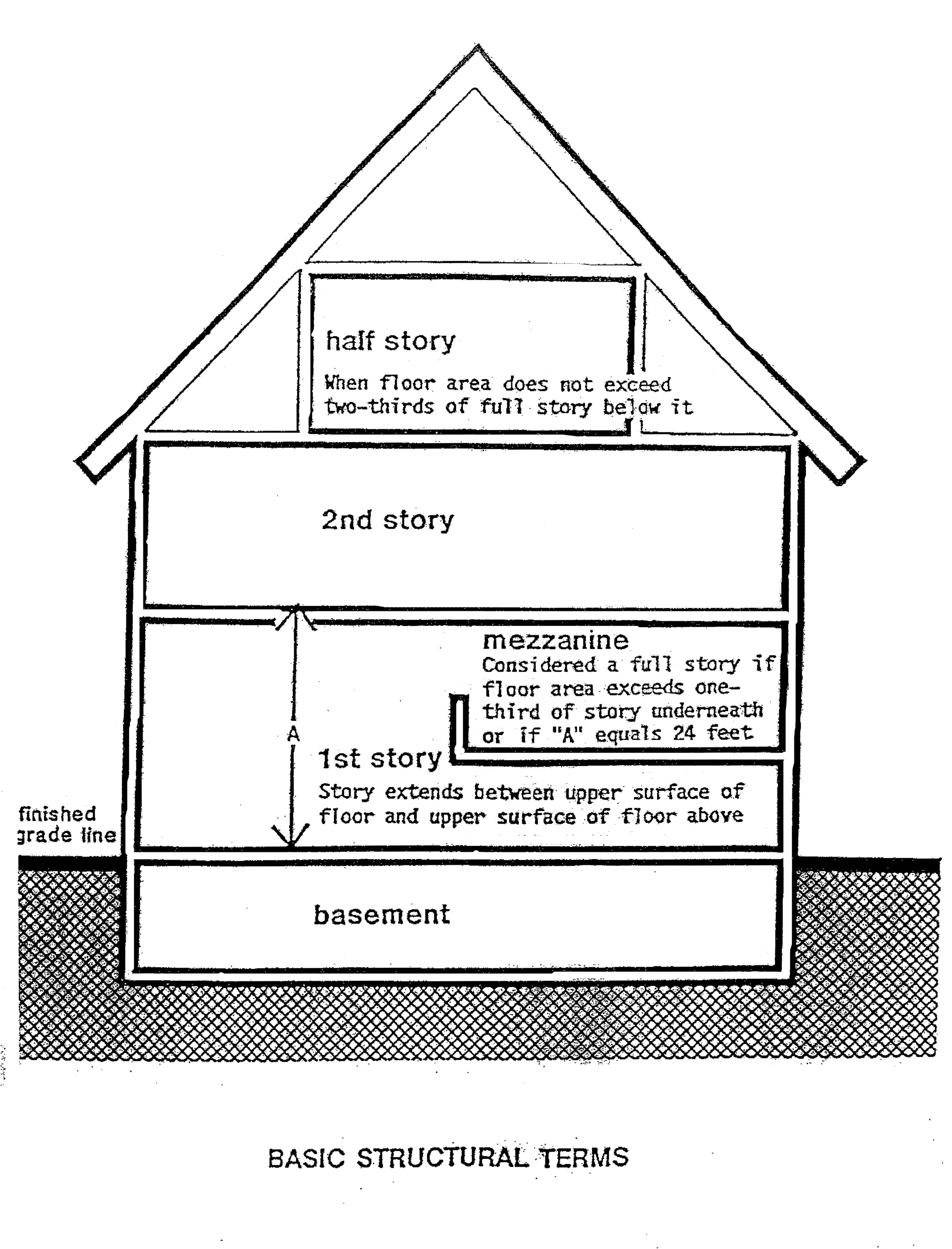 Story means that portion of a building, other than a basement or mezzanine as defined herein, included between the upper surface of any floor and the upper surface of the floor or roof next above it (see illustrations).