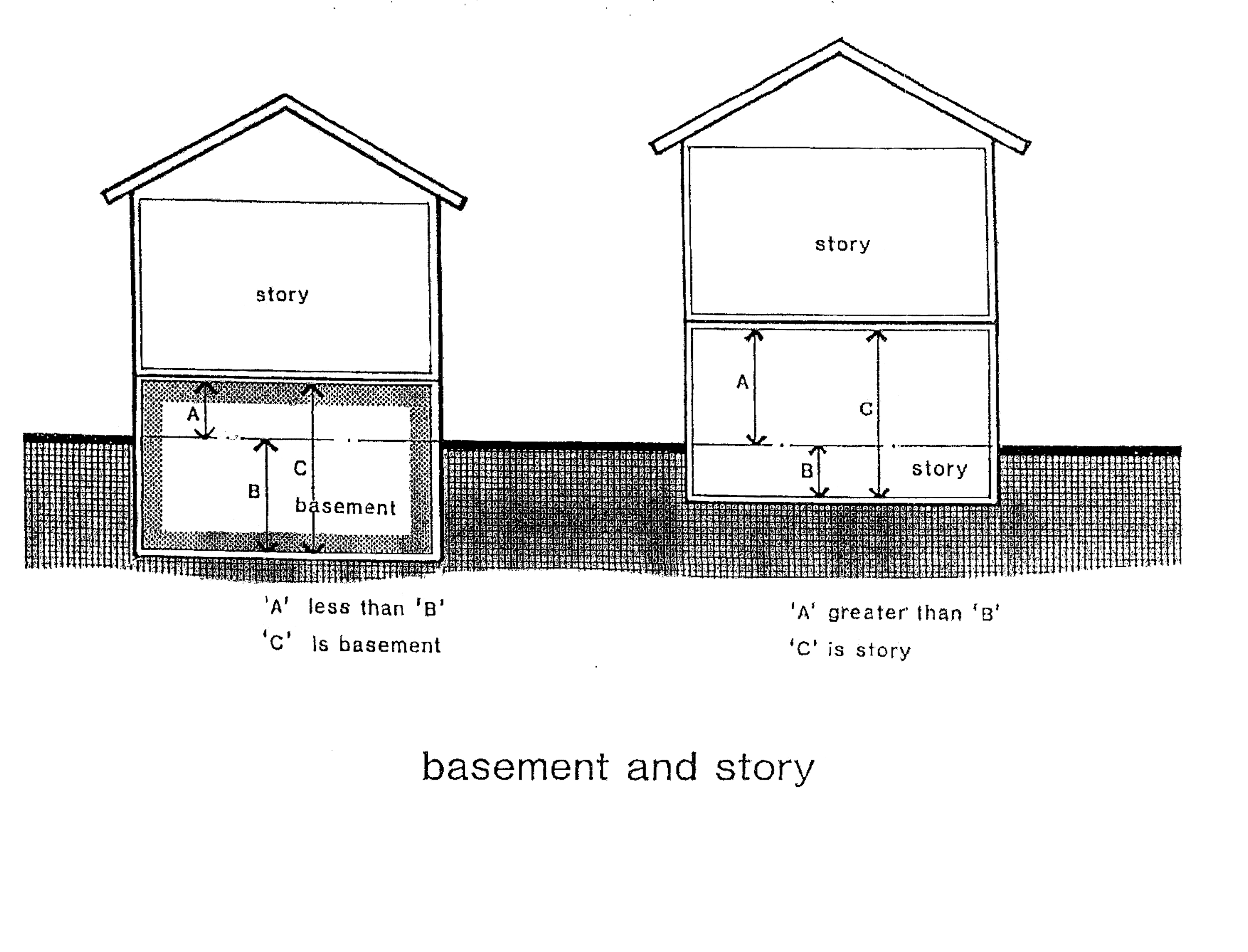 The term "basement" does not apply to earth-bermed or earth-sheltered homes. A basement shall not be counted as a story.