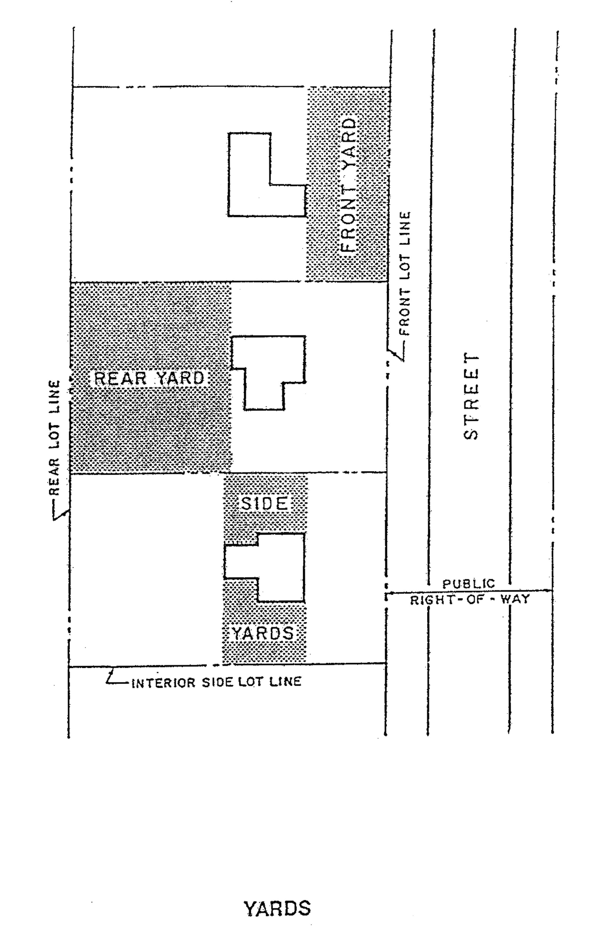 Yard means an open space on the same lot with a building, unoccupied and unobstructed from the ground upward, except as otherwise permitted in this chapter. The minimum required setback is the minimum depth of a front, rear or side yard necessary to conform to the required yard setback provisions of this chapter (see illustrations).