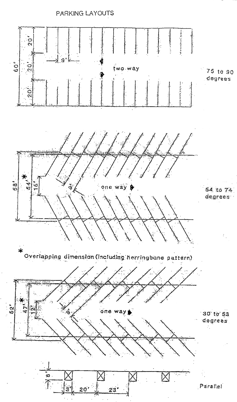 Off-street parking shall be designed to conform with the following standards and diagram: