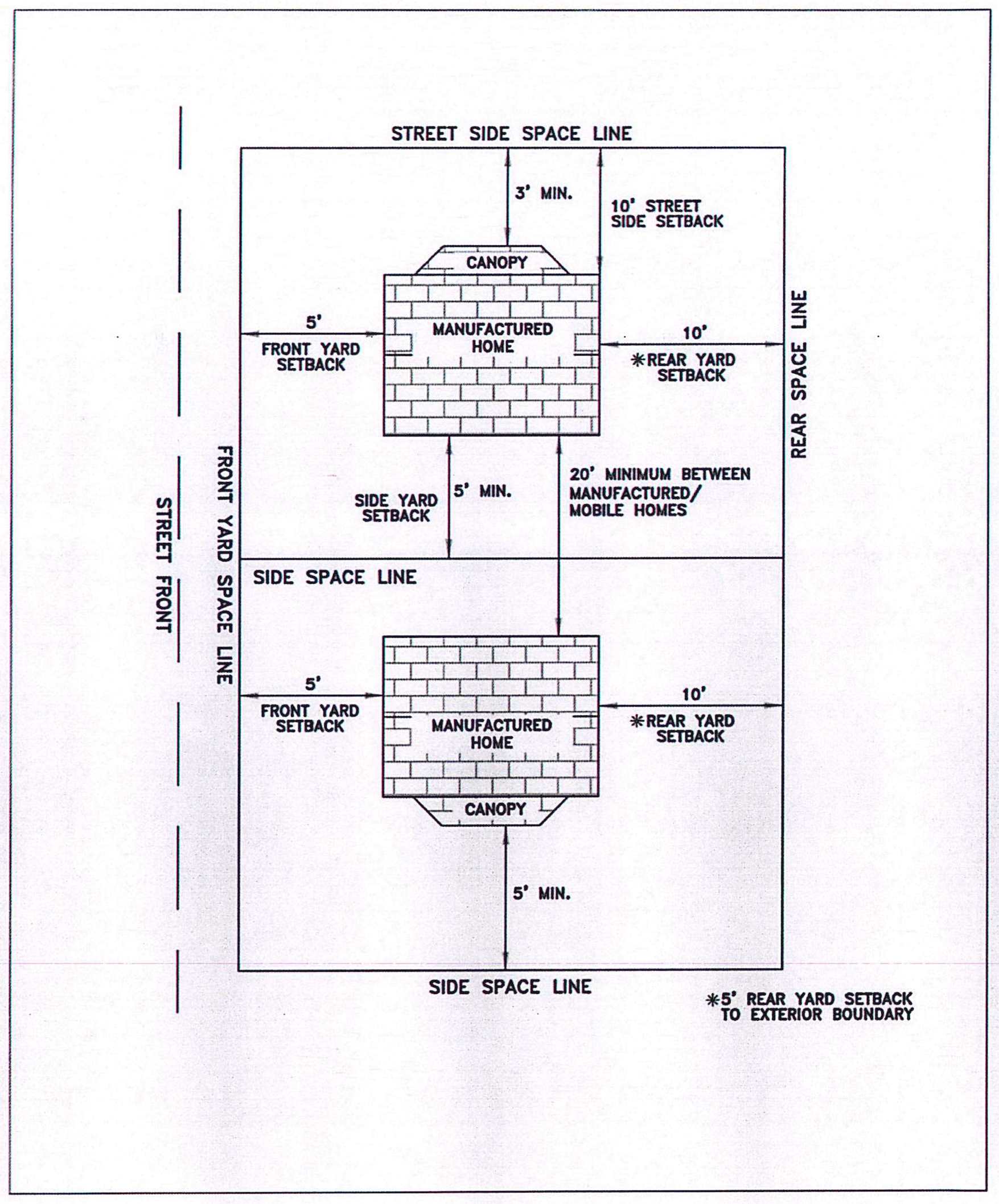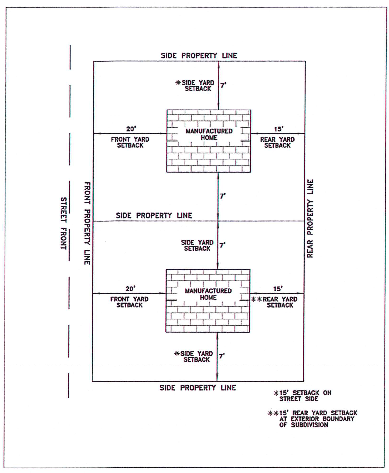 Figure 17.68.020a. Example of plot plan and setbacks—Manufactured home subdivision