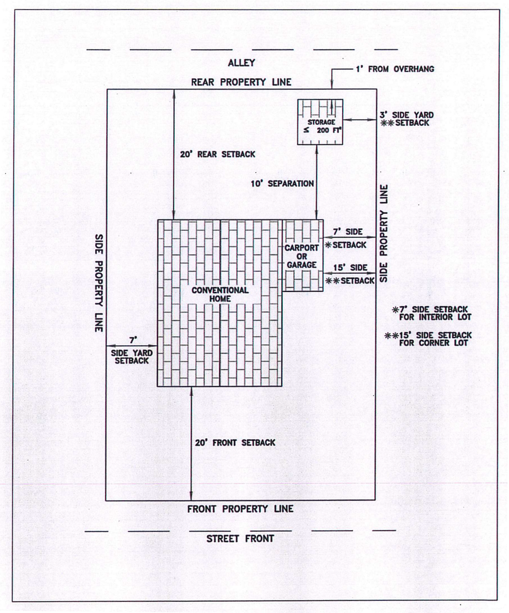 Figure 17.68.020d. Example of plot plan and setbacks—Conventional home, on alley