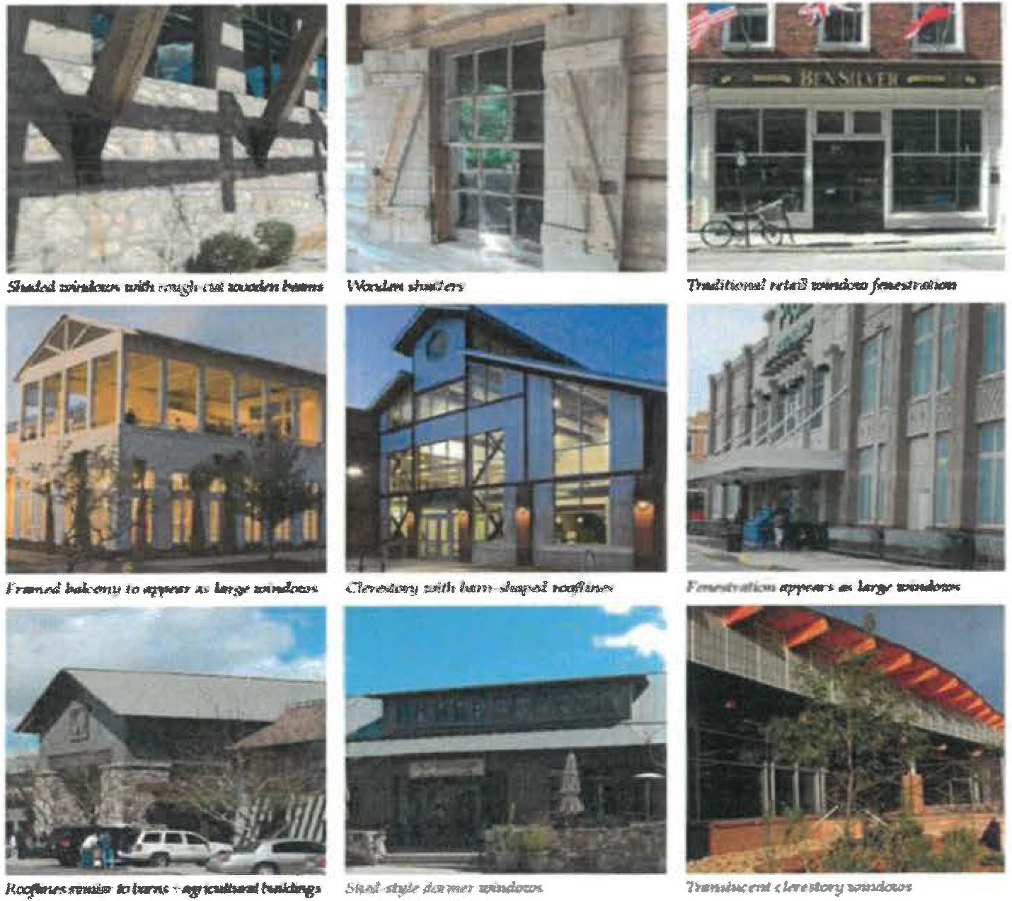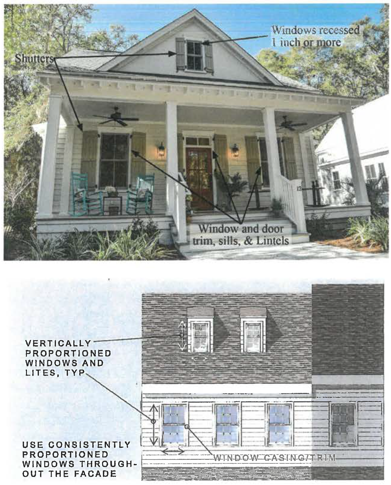 Fenestration elements (doors, windows and openings) shall be appropriately sized for the scale and style of the building on which they are located.