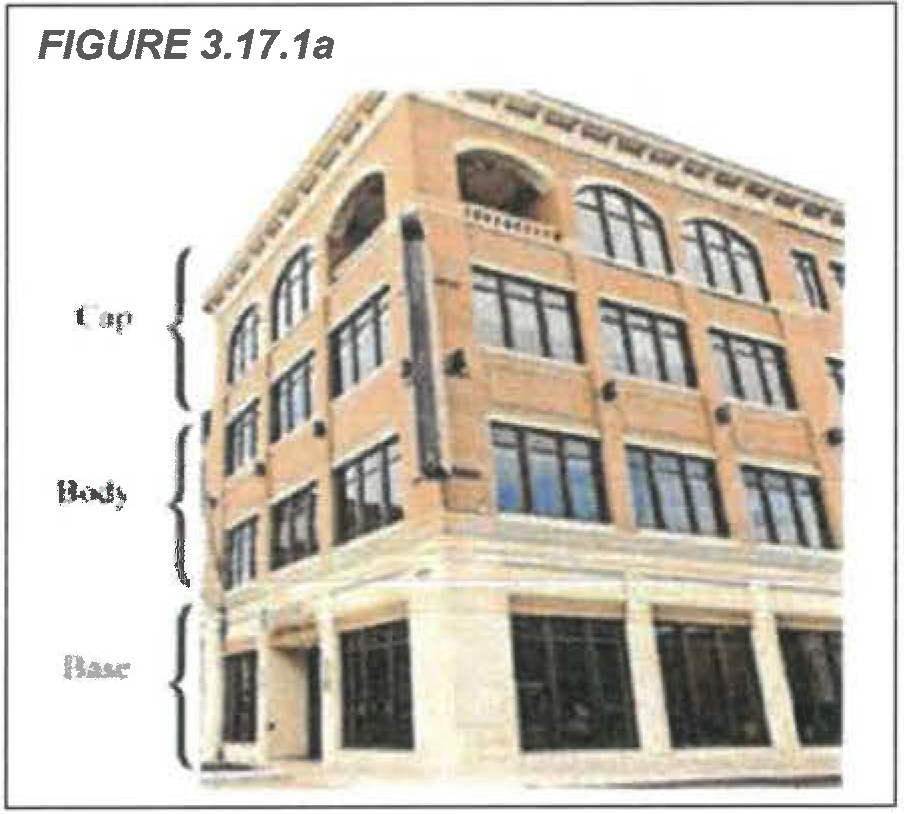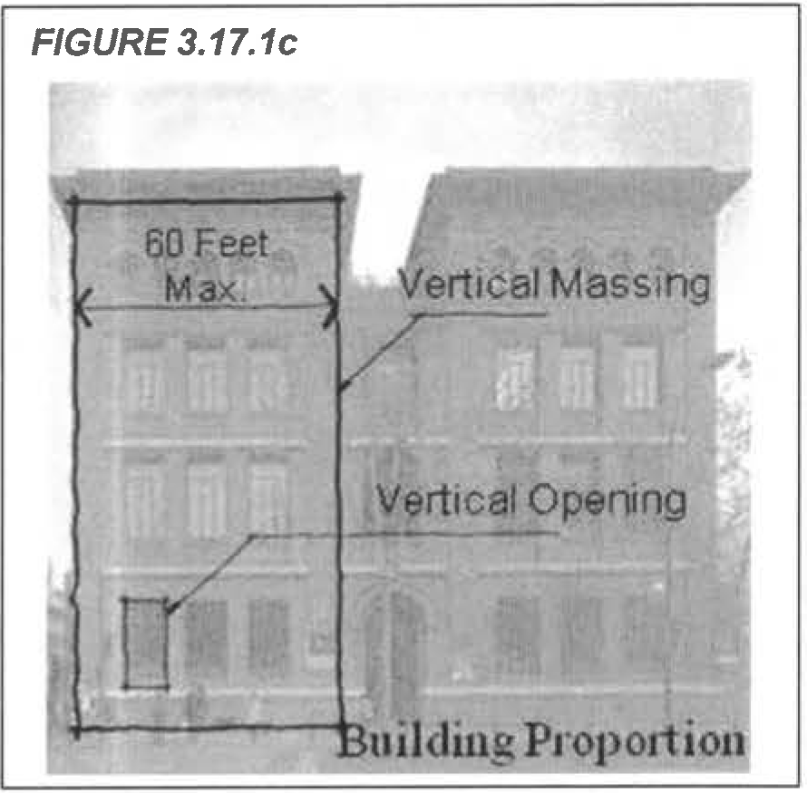 Buildings using large amounts of glass shall divide the glass into smaller panels achieving proportions emphasizing verticality. See Figure 3.4.