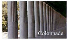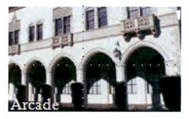 Arcade. A series of piers topped by arches that support a permanent roof.
