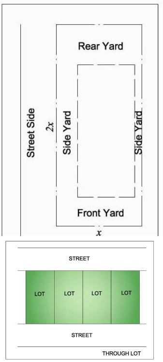 Yard, through: A through yard is any single zoning lot that is not a corner lot and that connects two (2) generally parallel streets. On through yards fronting two (2) streets, two (2) front yards shall be provided.