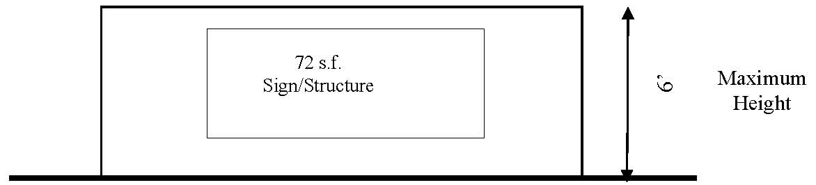Ground-mounted sign. To encourage ground-mounted signs (either horizontally or vertically oriented), the maximum area of the sign face shall not be greater than 72 square feet. The maximum height of a ground-mounted sign structure shall not exceed six feet (Figure B). To further encourage ground-mounted signs, the total site permitted sign area may be increased to 96 square feet.
