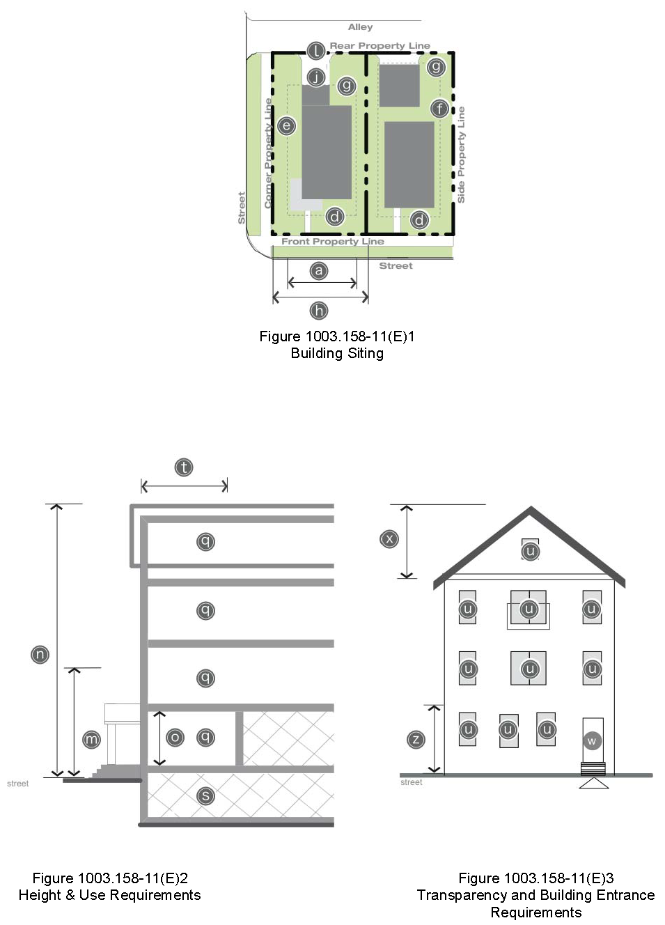 Minimum ground story and upper floor transparency. Refer to figure 1003.158(24), measuring transparency per façade. The minimum amount of transparency permitted on façades with street frontage, measured per story or per façade, depending on the building type.