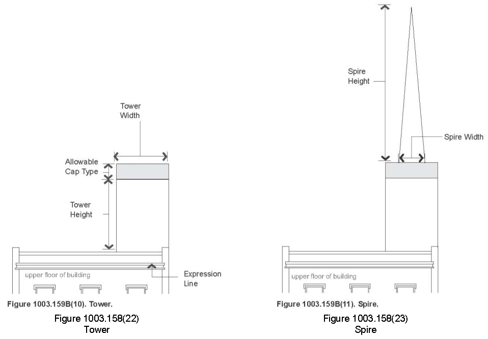 Towers. Refer to figure 1003.158(22). A tower is a rectilinear or cylindrical, vertical element, that must be used with other roof types.