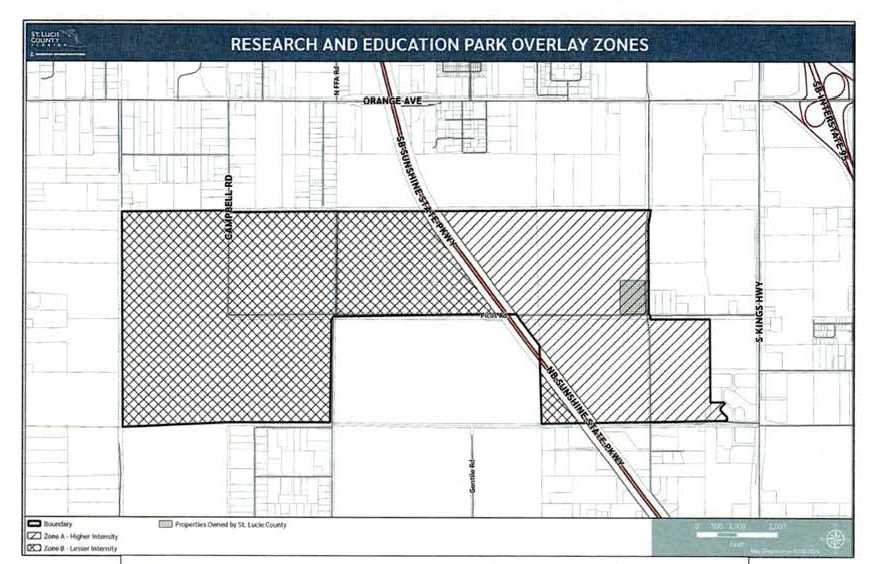 The regulations adopted herein shall affect all land development in the unincorporated area of St. Lucie County which is proposed in the area lying south and west of Angle Road, North of Orange Avenue, and east of King's Highway, near the western boundary of the City of Ft. Pierce, Florida. The boundaries of this area are shown on Map A, which is incorporated herein by reference.