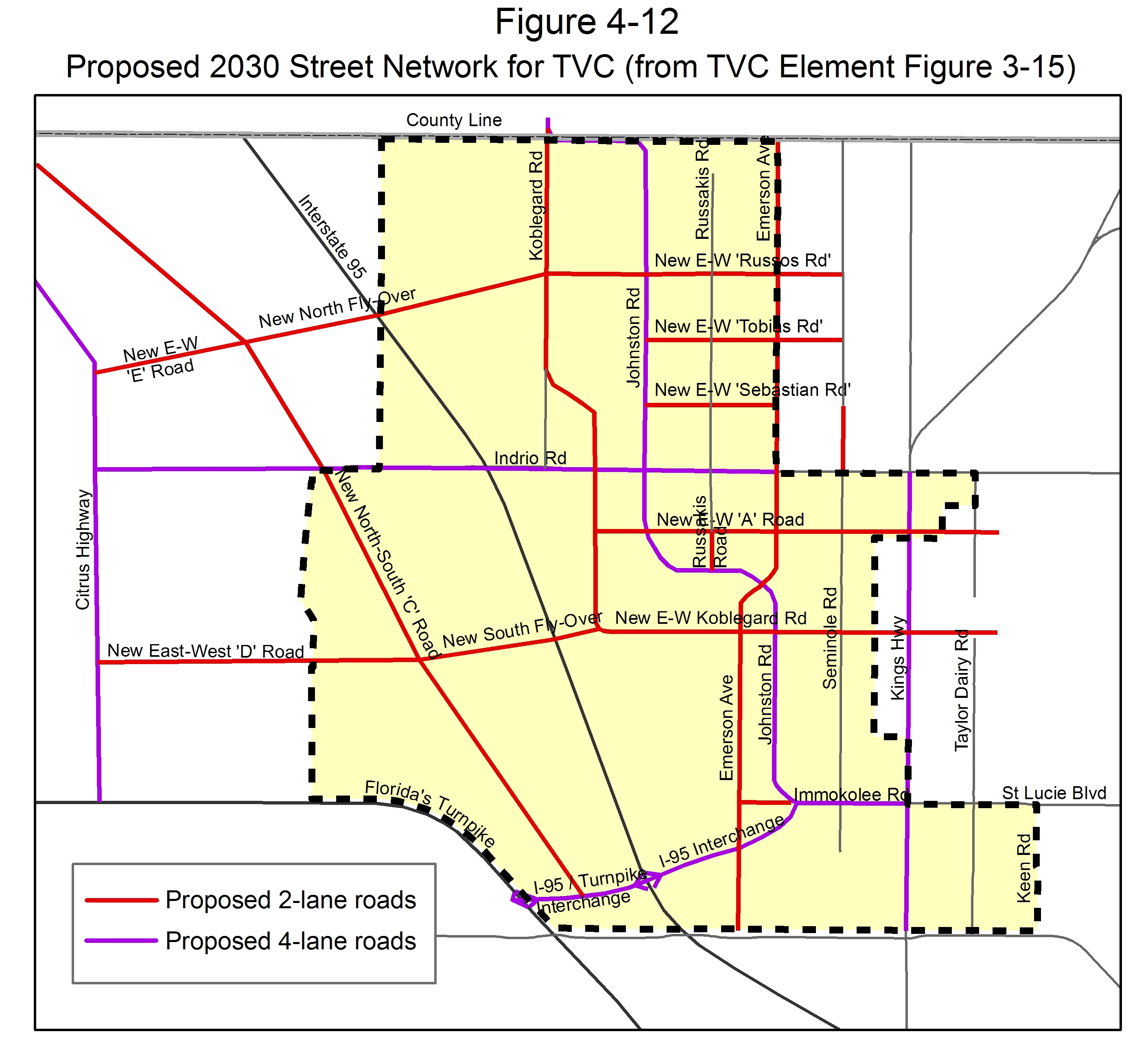 The following roads shown on Map [A] shall be dedicated, built, and eligible for road impact fee credits in accordance with the requirements for dedication of right-of-way for roads on the Thoroughfare Network Right-of-Way Protection Plan in accordance with the requirements of Section 7.05.03(I) of this St. Lucie County Land Development Code, as it may be amended from time to time.