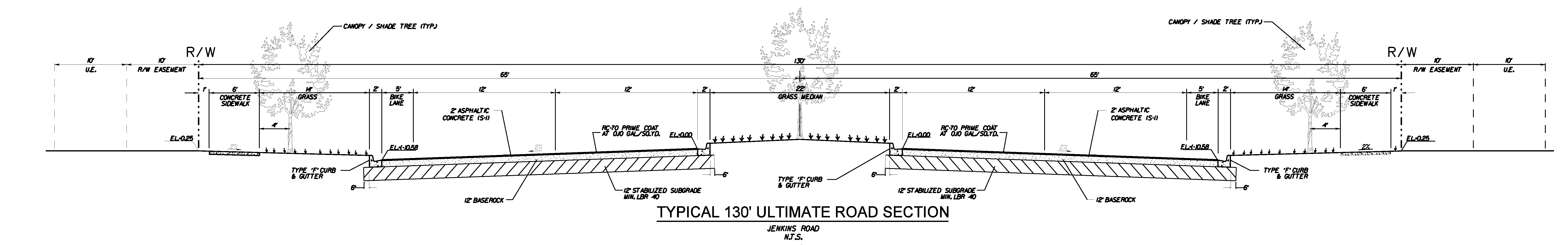 Required road design cross sections: The required minimum standard cross sections for use in designing a road within the Jenkins Road Area Plan Special District are as follows. The Board of County Commissioners may authorize a modified roadway section as part of a Planned Development application, after receiving the recommendation of the Development Review Committee. Any proposed modifications shall consider the type and anticipated volume of vehicle, bicycle, and pedestrian movements as well as drainage and utility needs.