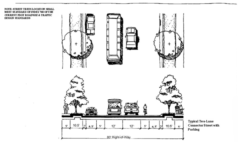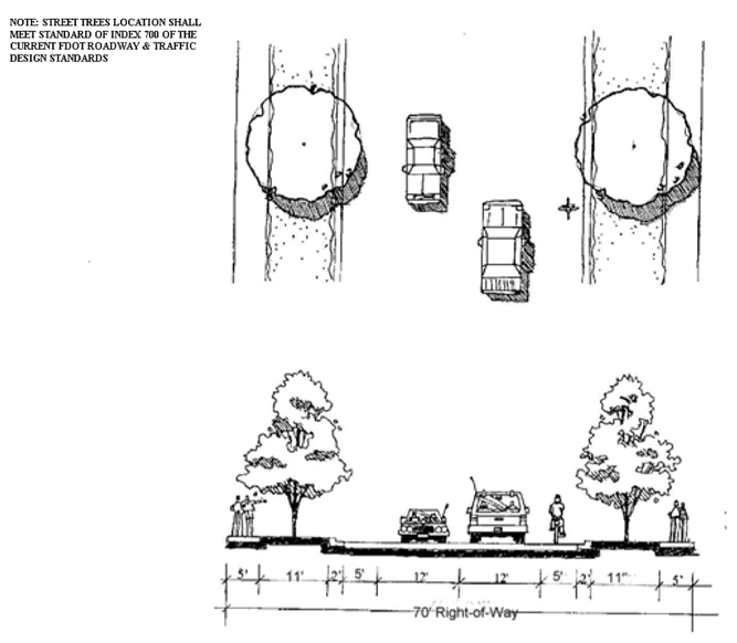 Roads D and E where Road D is between Garner Court and Avenue M, and Road E is between Orange Avenue and Angle Road. The Board of County Commissioners may authorize a modified roadway section as part of a Planned Development application, after receiving the recommendation of the Development Review Committee. Any proposed modifications shall consider the type and anticipated volume of vehicle, bicycle, and pedestrian movements as well as drainage and utility needs.