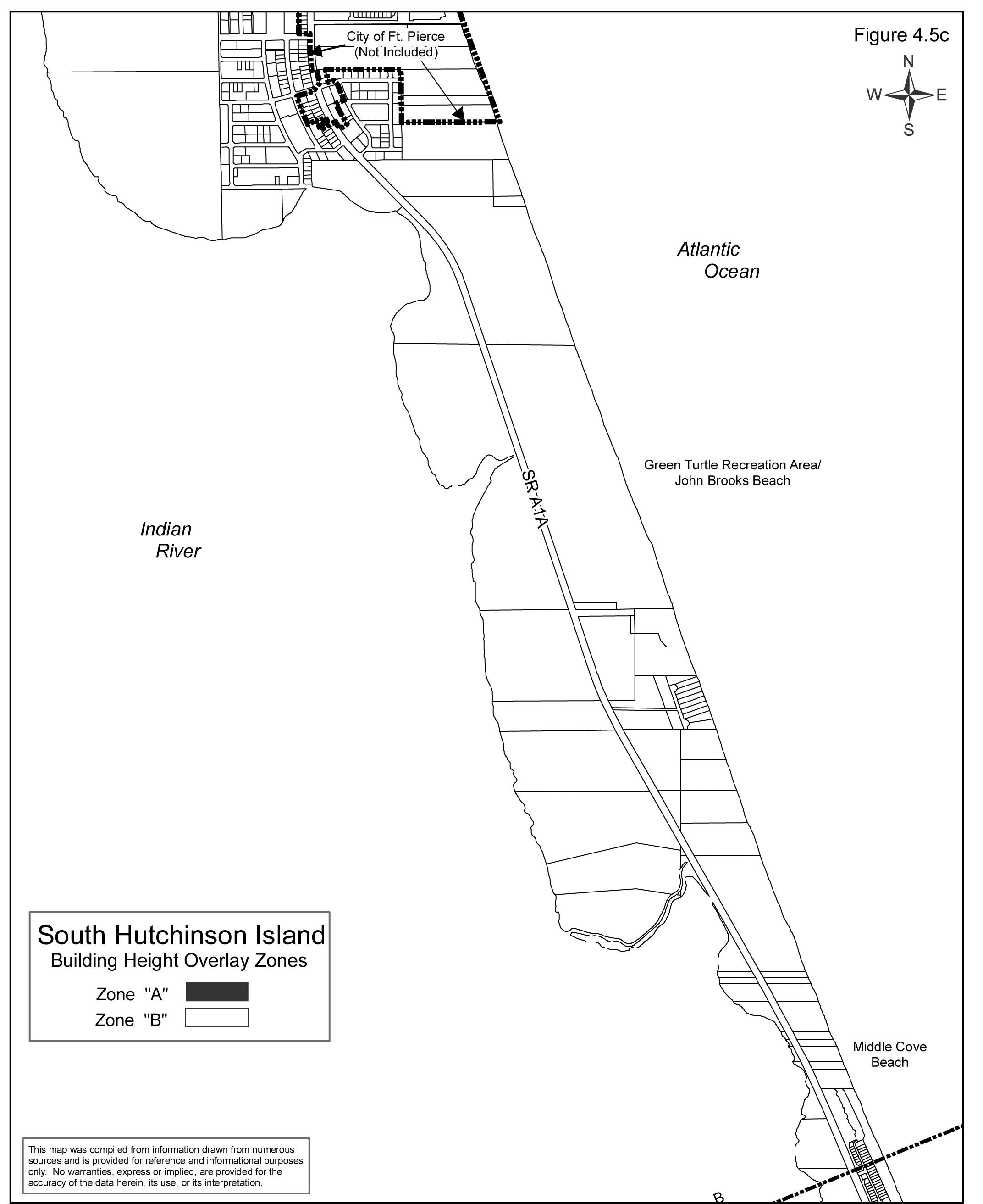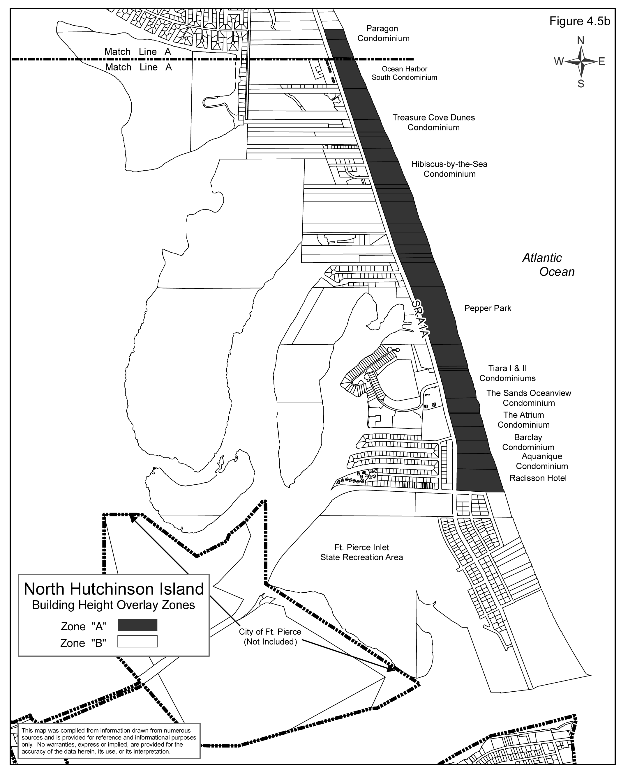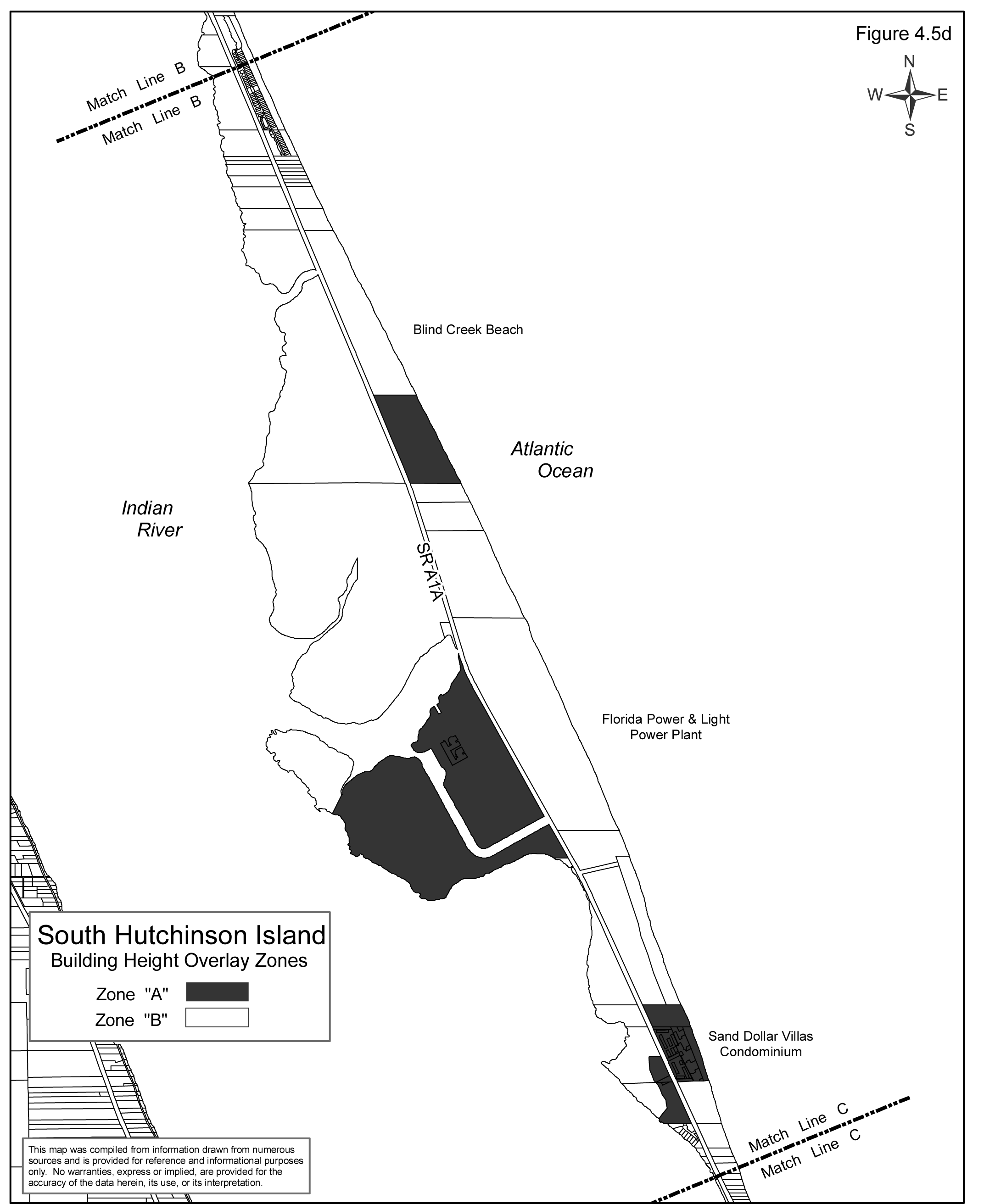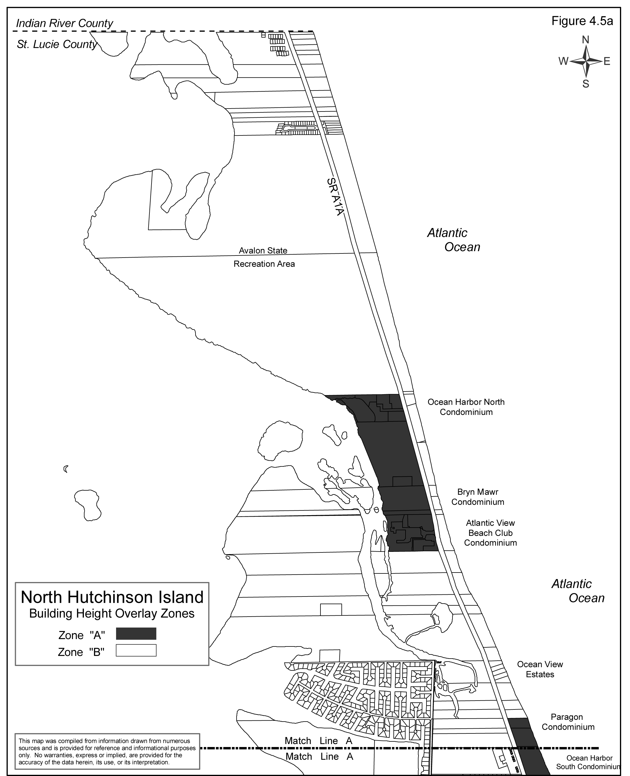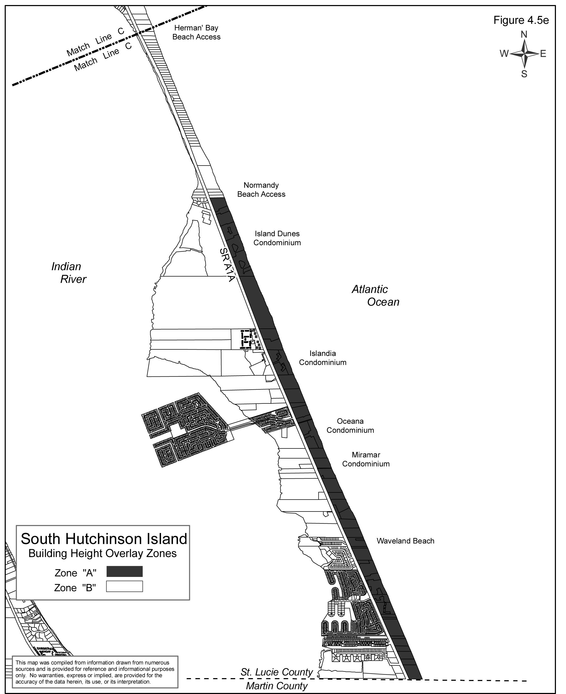 Such zones are shown on the Hutchinson Island Building Height Overlay Plan as depicted in Figures 4.5a through 4.5e.