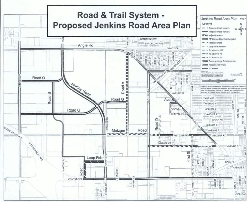 The required internal road system for the Jenkins Road Area Plan is shown on Map A, with its connections to external roads: