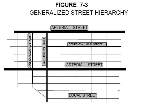 The intersection of any two (2) local roads or streets with a Major Collector or Arterial Roadway shall be separated by a minimum distance of six hundred sixty (660) feet, as measured from centerline to centerline.