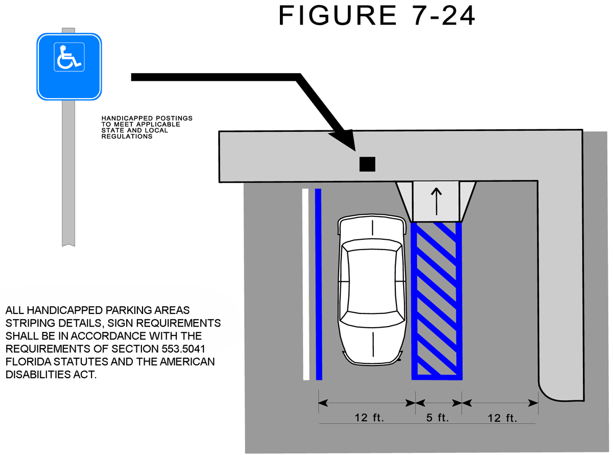handicapped (parallel) 12 feet × 23 feet