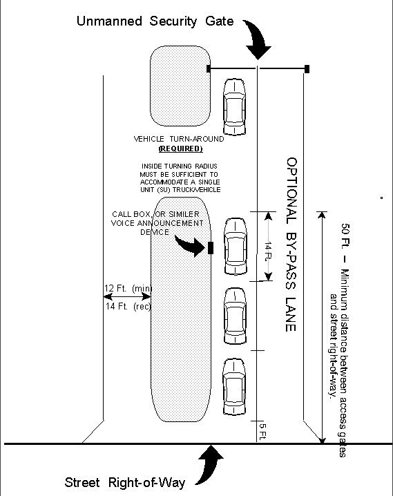 Any restricted gate access design shall adhere to Land Development Code Section 7.10.15.