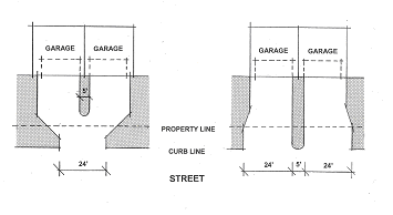 All property access drives and/or curb cut openings shall be a minimum of five feet from the side yard property line in all districts.