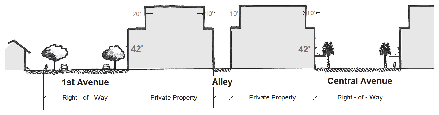 Development potential is slightly different within the districts to respect the character of the neighborhoods. Achieving maximum development potential will depend upon market forces, such as minimum desirable unit size, and development standards, such as minimum lot size, parking requirements, height restrictions, and building setbacks.