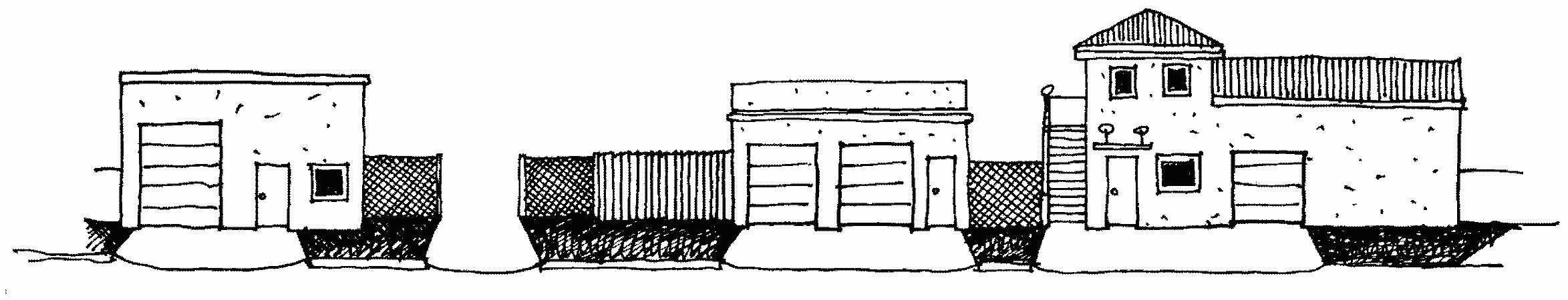 All mechanical equipment and utility functions (e.g. electrical conduits, meters, HVAC equipment) shall be located behind the front façade line of the principle structure. Mechanical equipment that is visible from the primary street shall be screened with a material that is compatible with the architecture of the principle structure.