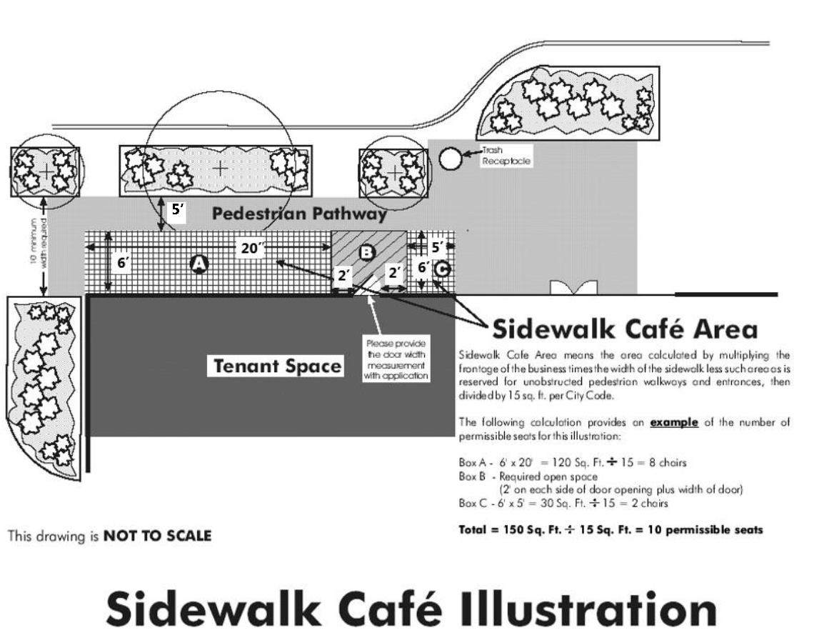 The existence of sidewalk cafés encourages additional pedestrian traffic to these areas and encourages more downtown activity and redevelopment.