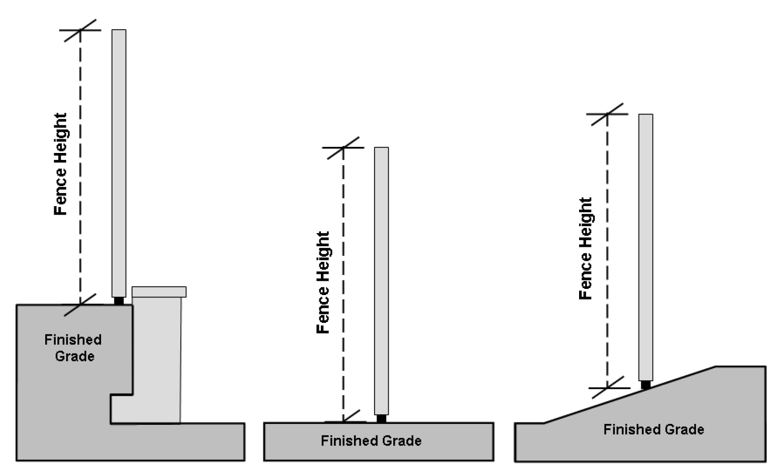 Except as provided in subsection (d)(2) of this section, fence height shall be measured from the finished grade upon which the fence is constructed to the top of the fence (see Figure 112-4).