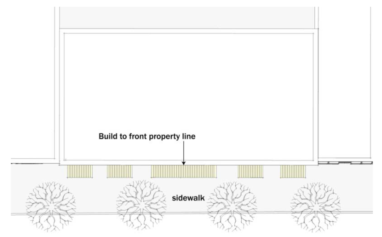 FIGURE 531-11. BUILDINGS CONSTRUCTED CONTIGUOUS TO FRONT PROPERTY LINE